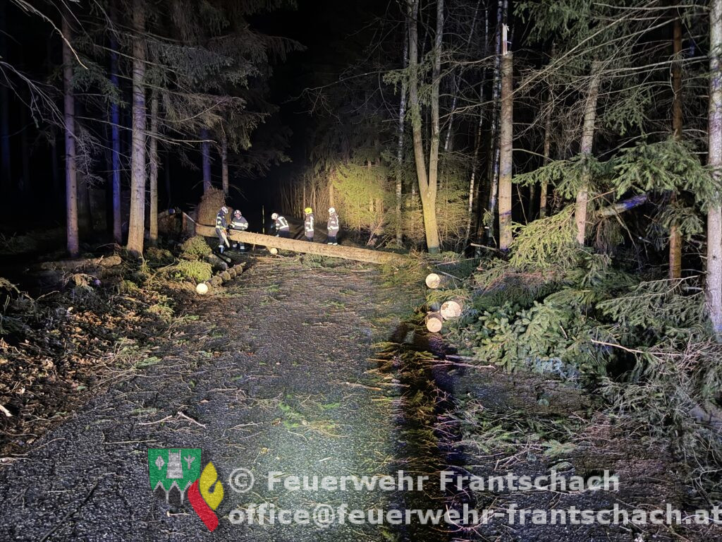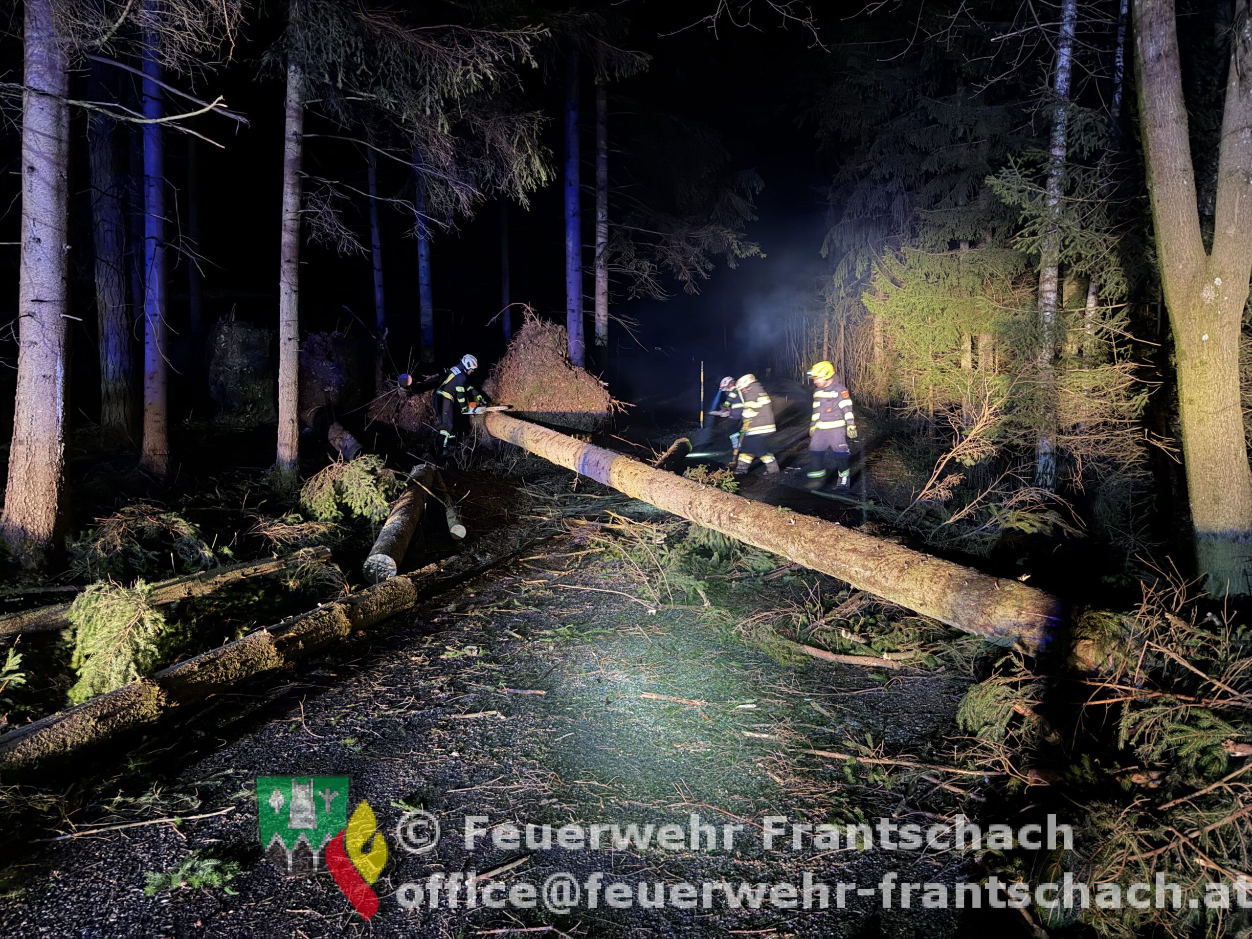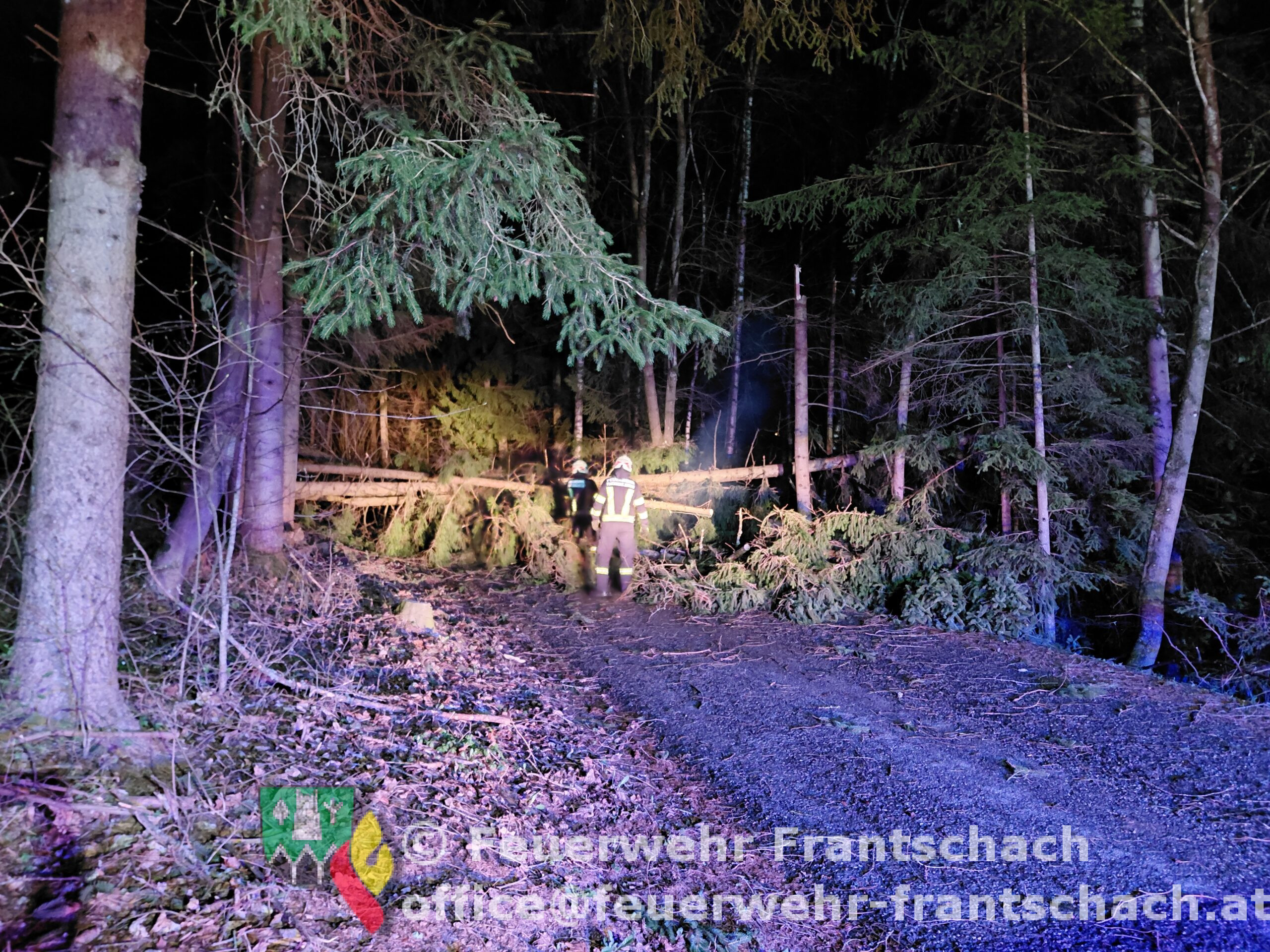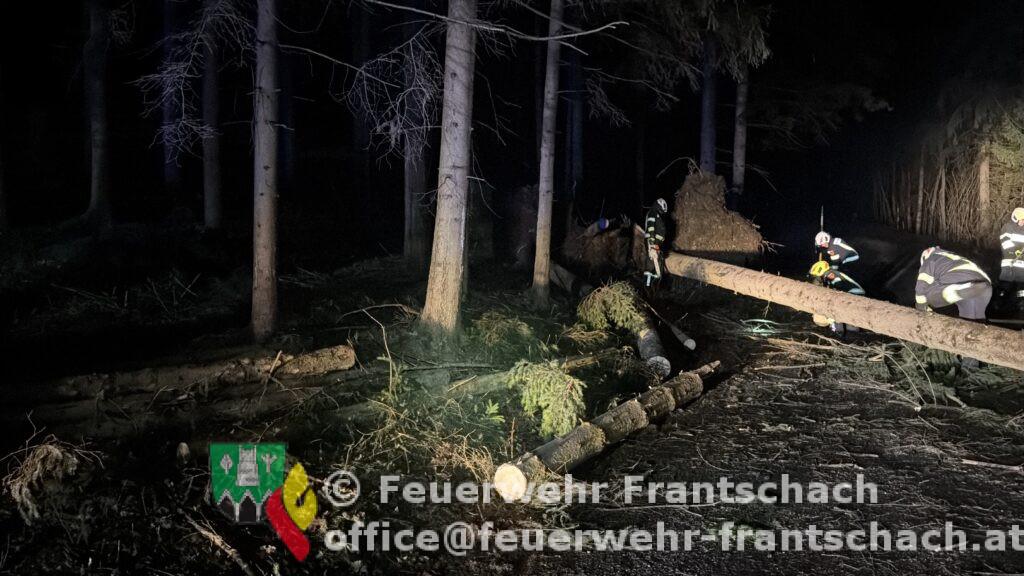 Am 26.03.2025 wurde die FF Frantschach – St. Gertraud mittels Sirene zu einem technischen Einsatz mit dem Stichwort „T1 Baum auf Fahrbahn“ alarmiert. Laut LAWZ blockierten mehrere Bäume die Fahrbahn im Bereich der Gemeindestraße Hinterwölch.