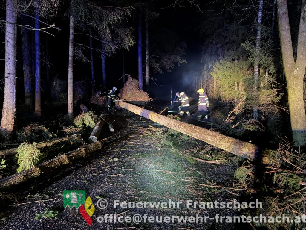 Am Einsatzort eingetroffen, blockierten kurz vor dem „Konrad-Kogel“ mehrere Bäume die gesamte Gemeindestraße, ein passieren mit einem PKW war unmöglich. Mehrere Bäume wurden durch die Einsatzkräfte mittels Motorsägen von der Fahrbahn entfernt und die Straße gereinigt, um die Straße wieder gefahrlos befahren zu können.