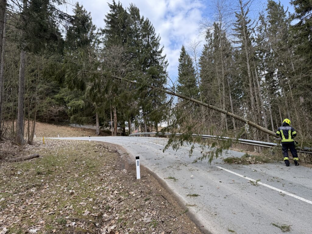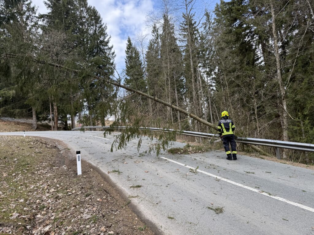 Am 27.03.2026 wurde die FF Frantschach – St. Gertraud mittels Sirene nochmals zu einem umgefallenen Baum mit dem Alarmstichwort „T1 Baum auf Fahrbahn“ alarmiert.