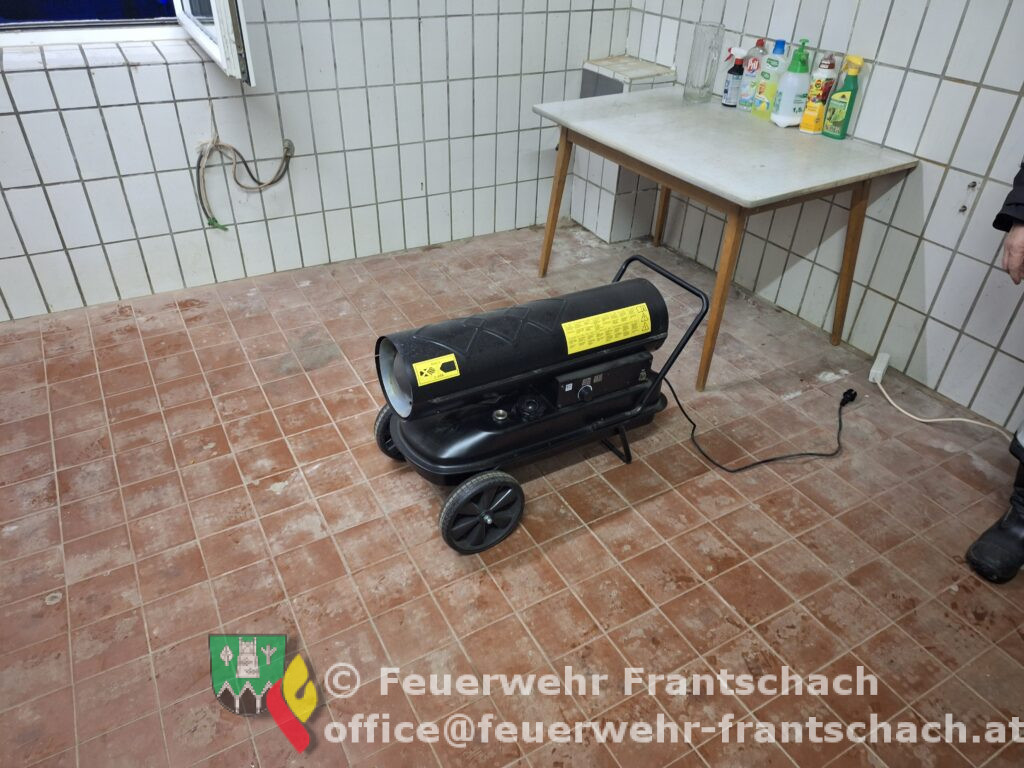Nach dem Eintreffen des Einsatzleiters wurde umgehend nochmals die Lage erkundet, dort stellte sich heraus, dass der Feuerschein durch einen Ofen entstanden ist, bei der weiteren Nachschau konnte eine Heizkanone durch ein Fenster gesichtet werden, jedoch keine Flammen sichtbar! Durch die anwesenden Kommandanten (GFK, AFK und BFK) wurde umgehend dann eine Türöffnung durchgeführt, eine hohe Kohlenmonoxid-Konzentration war dadurch naheliegend und es war nicht bekannt ob Personen im Gebäude waren!