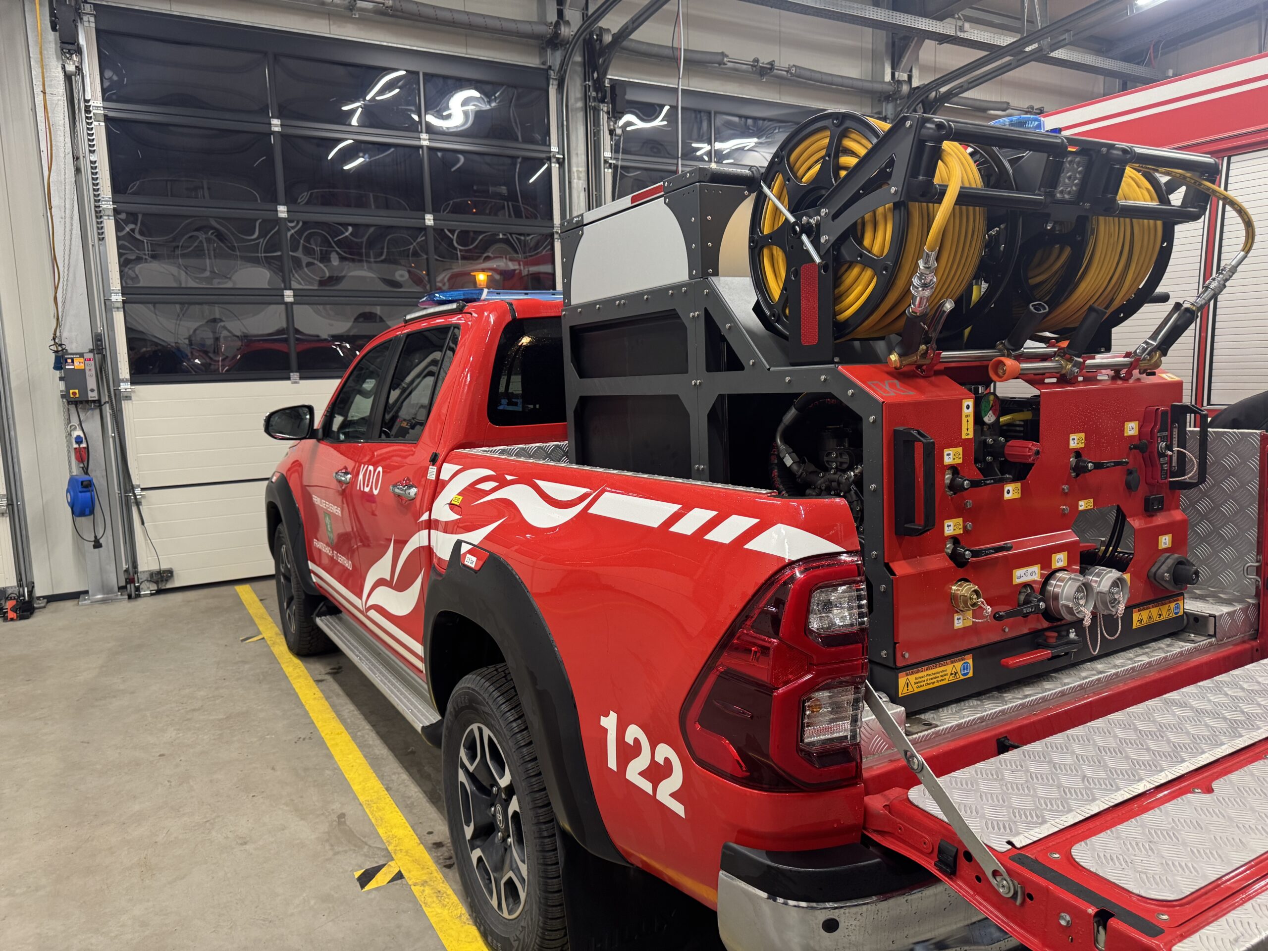 Bereits im Jahr 2023 wurde das Kommandofahrzeug (KDO) durch Kofler Fahrzeugbau mit einem flexiblen Wechselmodulsystem ausgestattet. Dieses ermöglicht es, innerhalb kürzester Zeit und mit nur zwei Personen verschiedene Module auf- und abzurüsten. Nun wurde das System um ein speziell entwickeltes Waldbrandmodul ergänzt, das gezielt für Einsätze bei Wald-, Flächen- und Vegetationsbränden konzipiert wurde.